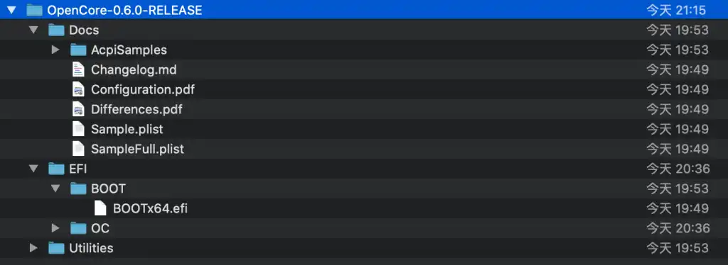 编译完成的OpenCore-0.6.0-RELEASE.zip,文件路径: